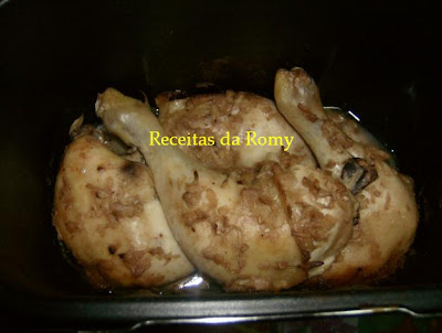 Misturei 1/2 iogurte com 1/2 copo do iogurte em leite magro. Juntei 3 colheres de sopa de cebola instantânea com a mistura anterior e barrei as pernas de frango.